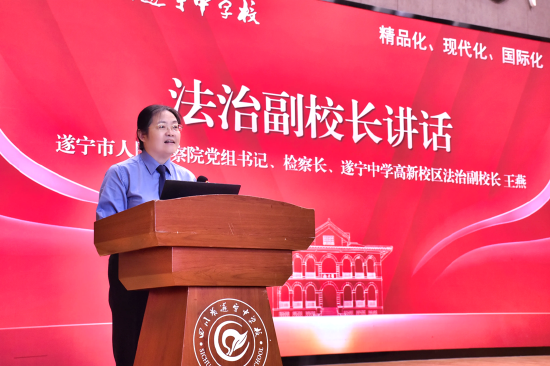 10月15日下午,遂宁中学在高新校区鸣谦学术交流中心举行2025年秋季学期德育工作会。本次会议以“聚焦德育路径·提升育人实效”为主题,旨在加强班主任队伍建设,进一步提升班主任的德育素养和管理水平。遂宁市人民检察院党组书记、检察长、遂宁中学高新校区法治副校长王燕,遂宁市人民检察院党组副书记、副检察长、遂宁中学介福校区法治副校长王海志,遂宁市人民检察院党组成员、副检察长李虹志,以及遂宁中学党委书记张东、校长何亚杰等领导出席会议,学校全体班主任和近三年新进教师参会。