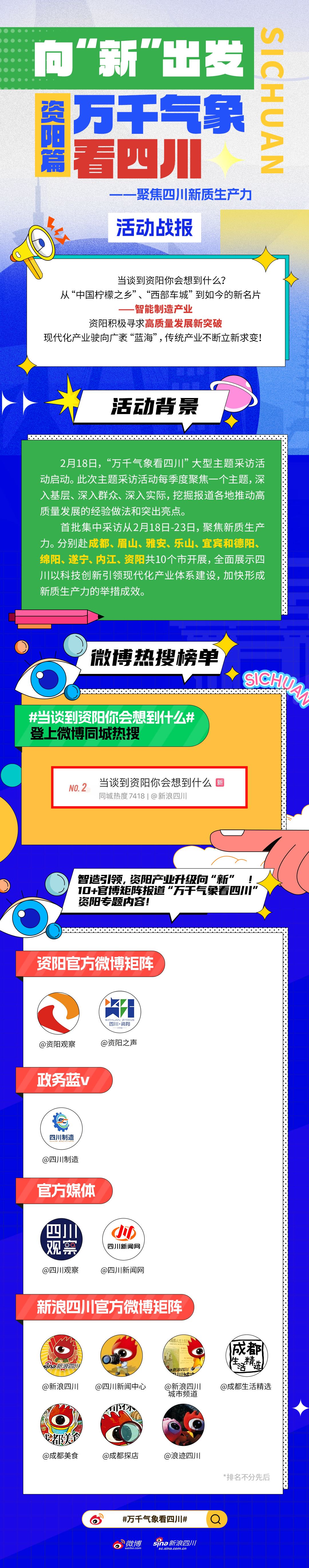 2月18日,“万千气象看四川”大型主题采访活动正式启动。按季度分别聚焦新质生产力,成渝地区双城经济圈建设,巴蜀文化创造性转化、创新性发展,县域经济高质量发展4个主题